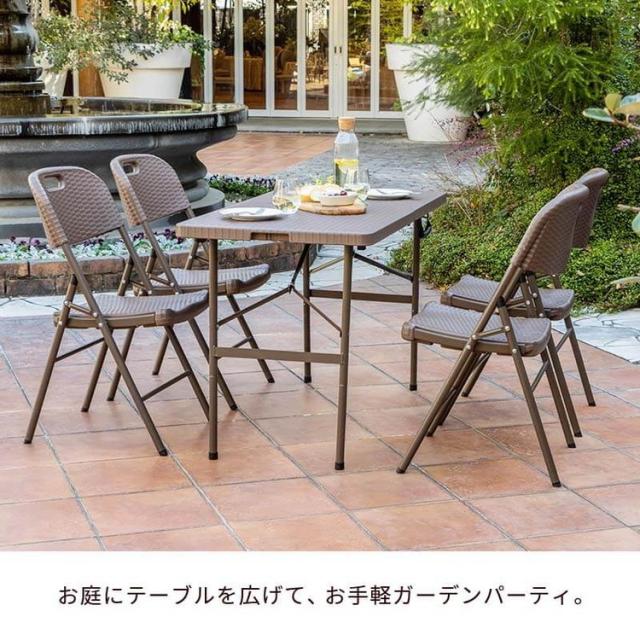 ラタン調 折りたたみ ガーデン 5点セット マカティ 幅122cm 折りたたみテーブル 折りたたみチェア セット 屋外 テーブル アウトドアチェア 折り畳み コンパクト ガーデンファニチャー(代引不可)【送料無料】