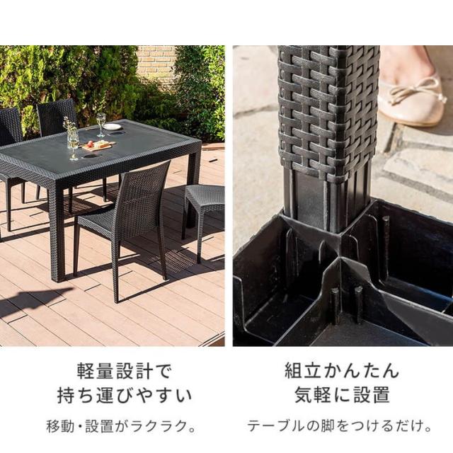 ・天板の真ん中に穴が空いているので、パラソルを差し込むことが可能です。