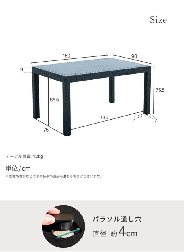 ラタン調 ガーデンテーブル 幅150cm ピクシス 単品 長方形 アウトドア テーブル 屋外 アウトドア テーブル ベランダ テラス ガーデンファニチャー(代引不可)【送料無料】