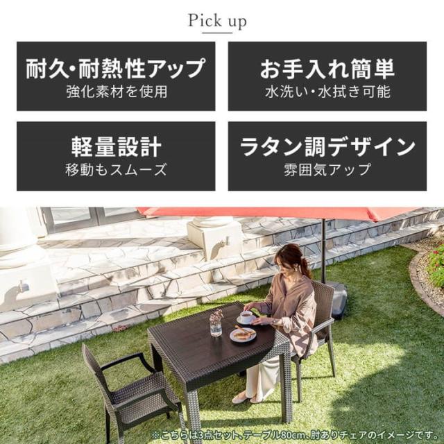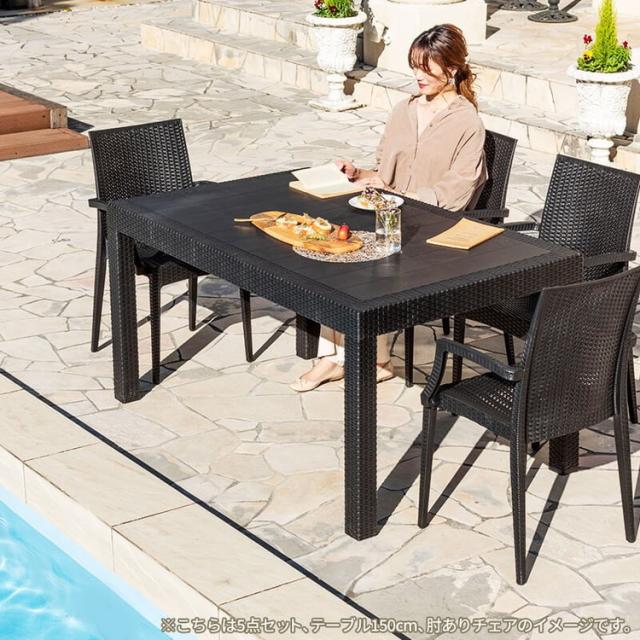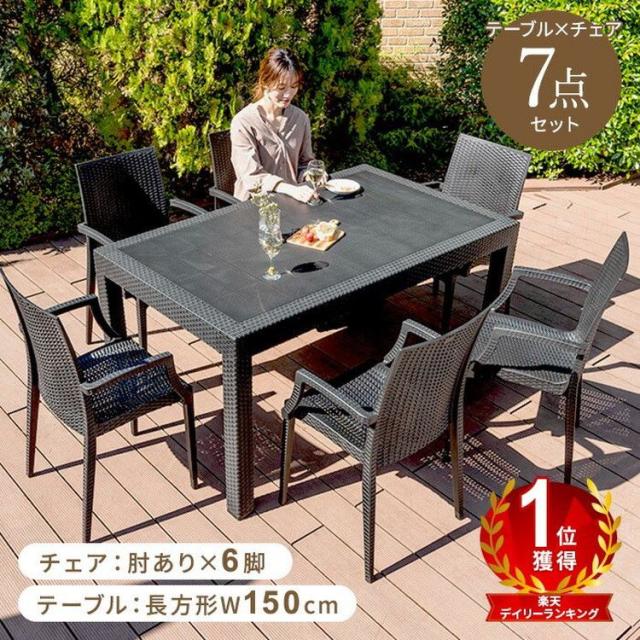ラタン調 ガーデンテーブル W150テーブル 肘付きチェア 7点セット