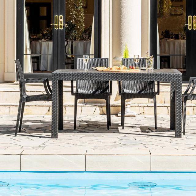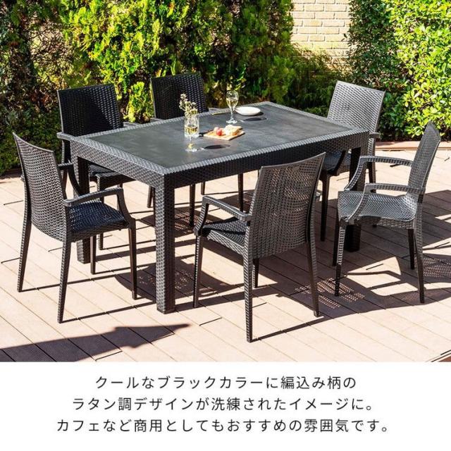 ラタン調 ガーデン 7点セット ピクシス 肘付き ガーデンチェア6脚 ガーデンテーブル 幅150cm 長方形 セット 屋外 アウトドアチェア ベランダ テラス ガーデンファニチャー(代引不可)【送料無料】