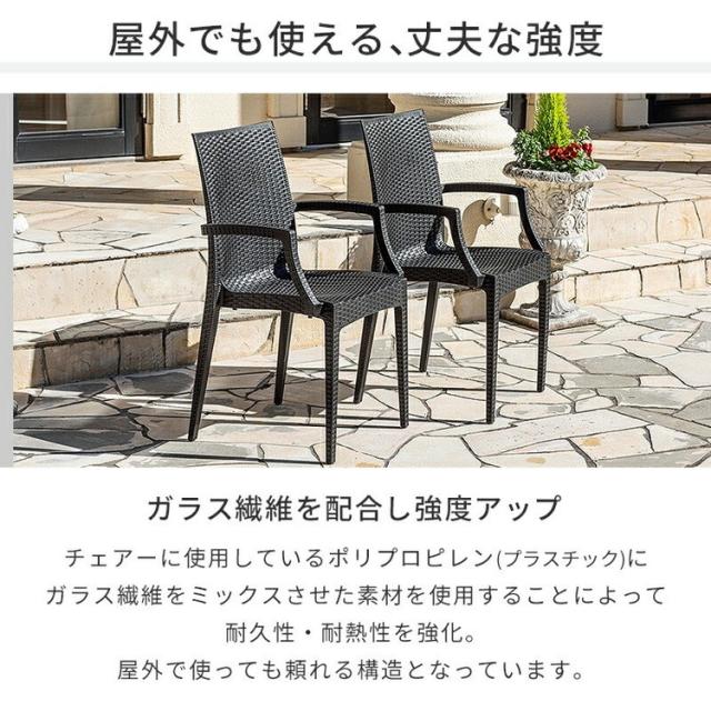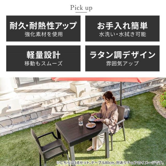 ラタン調 ガーデンテーブル W150テーブル 肘付きチェア 5点セット