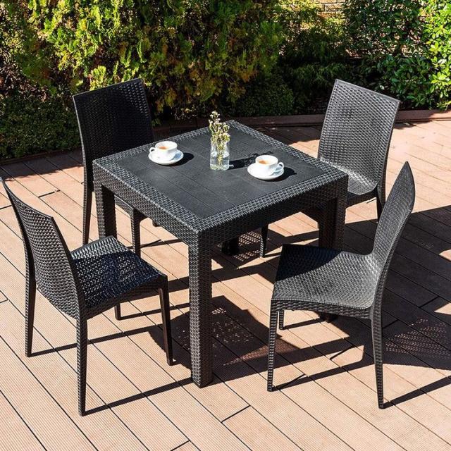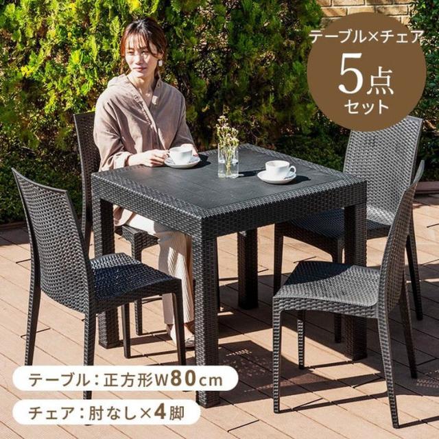 ラタン調 ガーデン 5点セット ピクシス 肘無し ガーデンチェア4脚 ガーデンテーブル 幅80cm 正方形 セット 屋外 アウトドアチェア ベランダ テラス ガーデンファニチャー(代引不可)【送料無料】