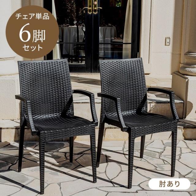 ラタン調 チェア 肘付き ピクシス 6脚セット アウトドア チェア 椅子 屋外 アウトドアチェア ベランダ テラス ガーデンファニチャー(代引不可)【送料無料】