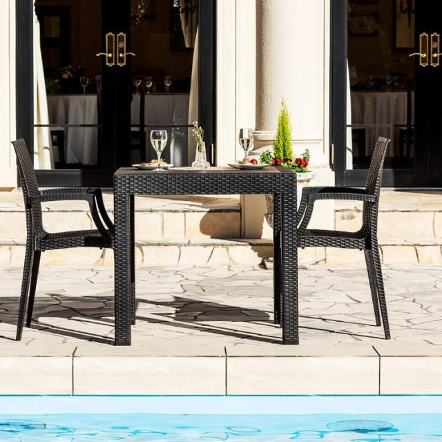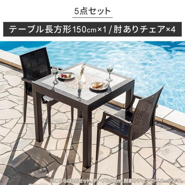 ラタン調 ガーデン 5点セット ピクシス 肘付き ガーデンチェア4脚 ガーデンテーブル 幅80cm 正方形 セット 屋外 アウトドアチェア ベランダ テラス ガーデンファニチャー(代引不可)【送料無料】