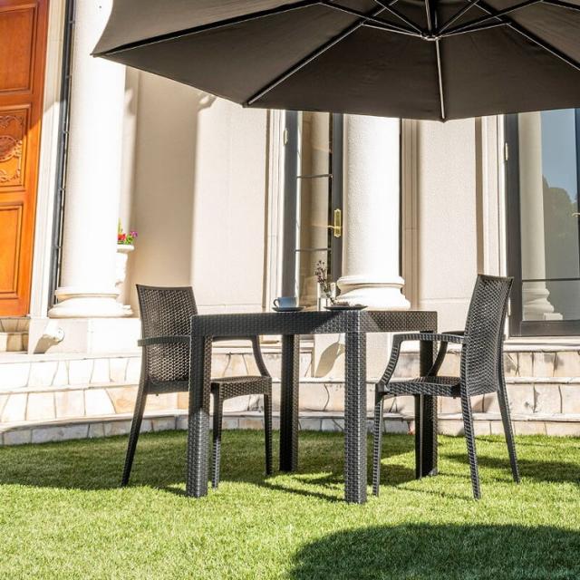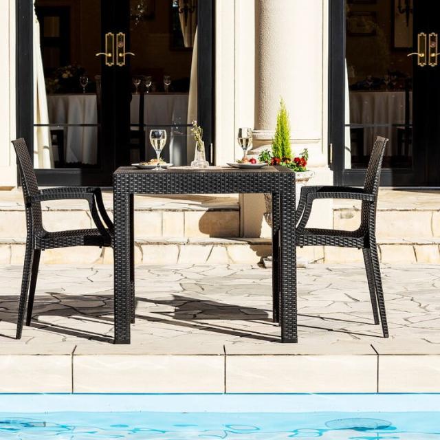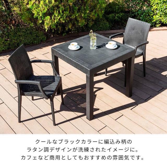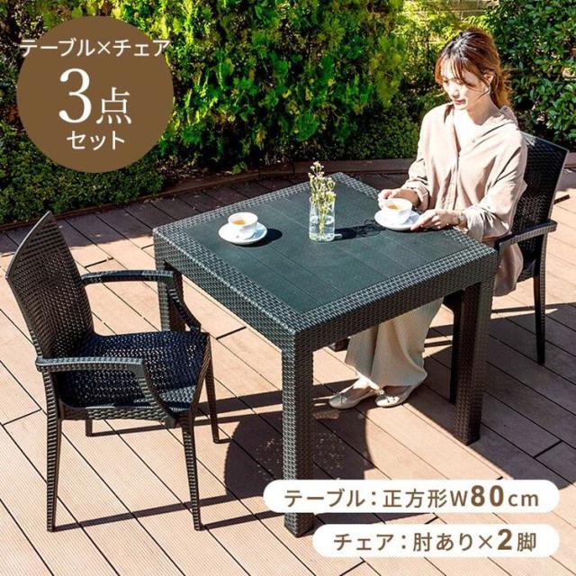 ラタン調 ガーデン 3点セット ピクシス 肘付き ガーデンチェア2脚 ガーデンテーブル 幅80cm 正方形 セット 屋外 アウトドアチェア ベランダ テラス ガーデンファニチャー(代引不可)【送料無料】
