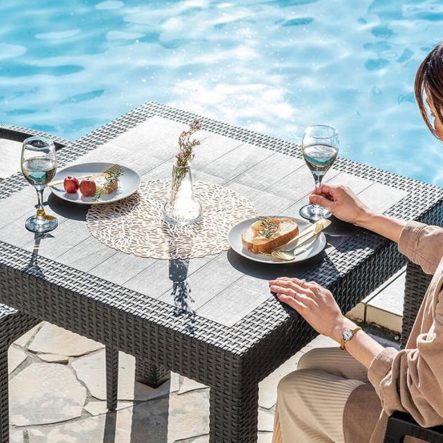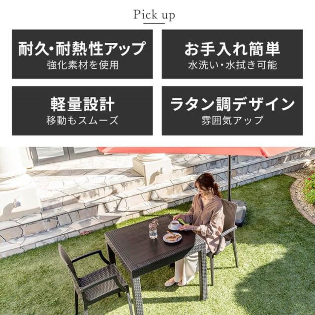 ・ラタン調デザインがアクセントとなったガーデン3点セットです。