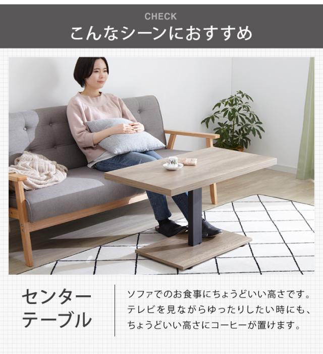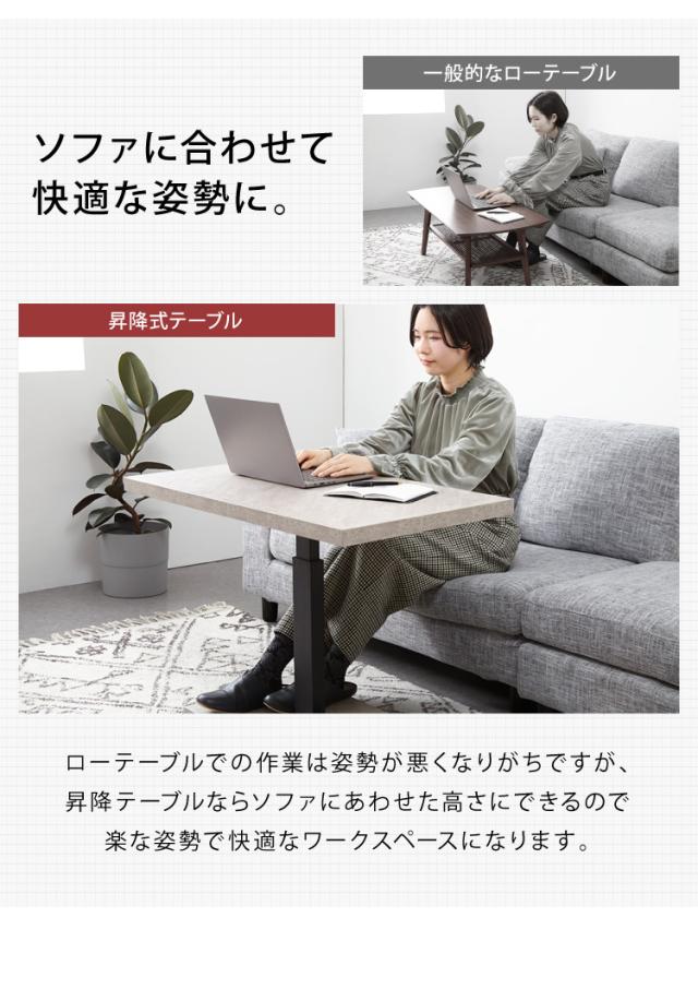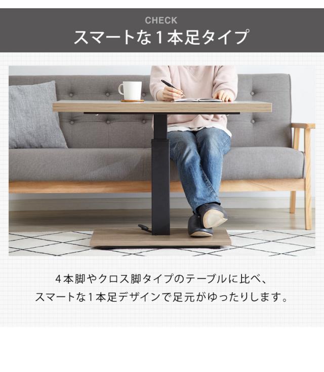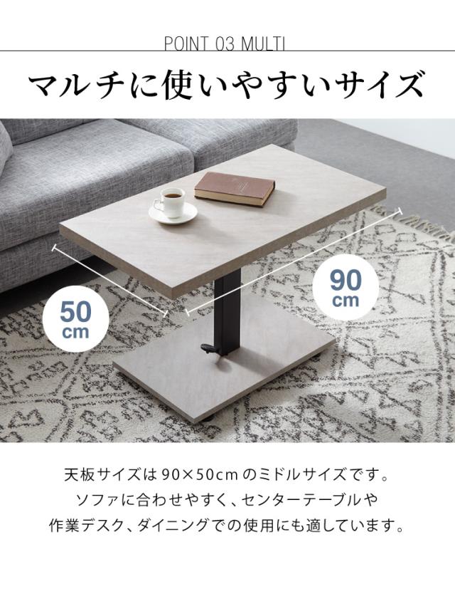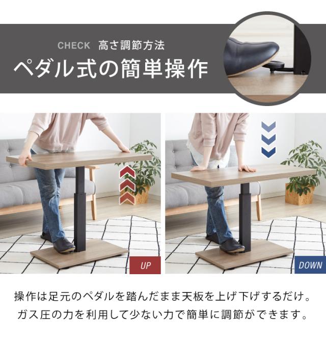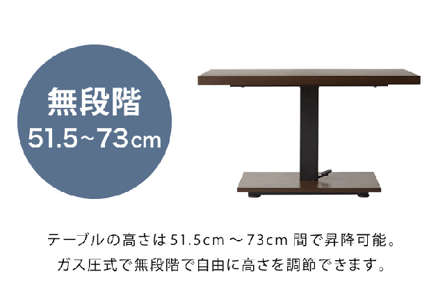 昇降式 センターテーブル 無段階高さ調整 51.5~73cm ソファテーブル コーヒーテーブル 天板サイズ:90×50cm ローテーブル リビングテーブル リフティングテーブル テレワーク 在宅勤務【送料無料】