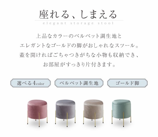 スツール 収納 おしゃれ 丸型 ベルベット ベロア くすみカラー 円形 ゴールド 脚付き リビング ドレッサー 玄関 椅子 イス チェア オットマン かわいい 収納ボックス 収納スツール【送料無料】