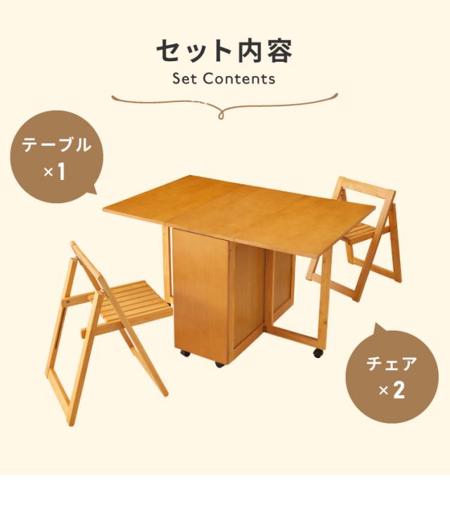 ダイニングテーブル 3点セット 木製 天然木 ダイニングチェア2脚セット バタフライダイニング キャスター付き ワゴン チェア収納 リモートワーク 省スペース ダイニングテーブルセット 新生活(代引不可)【送料無料】