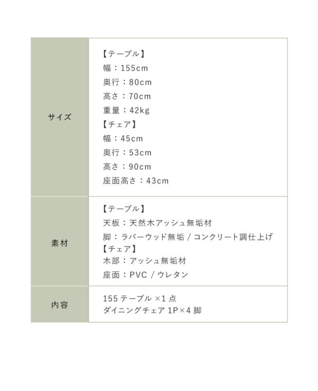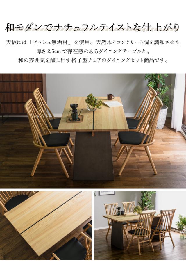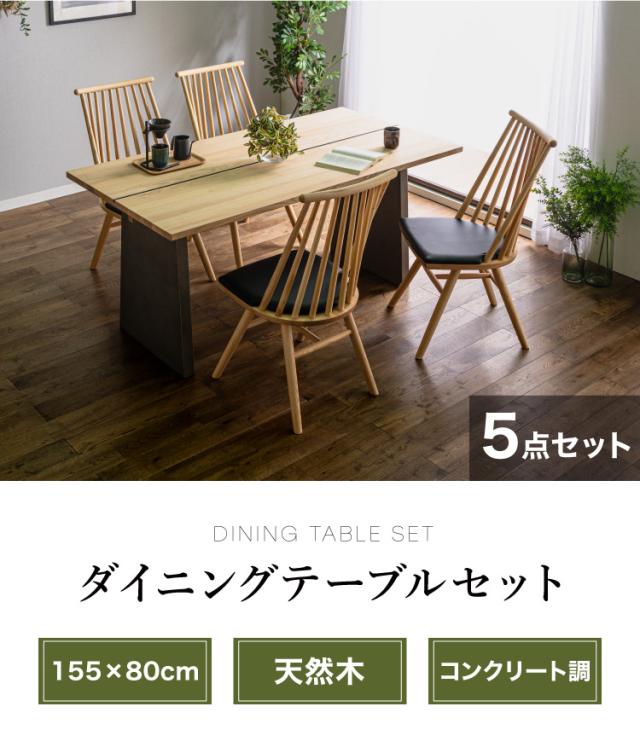 ダイニングテーブルセット 4人掛け 5点セット 155×80 天然木 アッシュ 無垢材 ハイバック コンクリート調 和モダン ナチュラル ダイニングセット ハイバックチェア ダイニングチェア ダイニングテーブル 4脚 (代引不可)【送料無料】