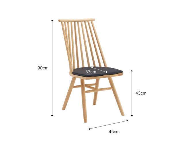 ・アッシュ無垢のハイバックチェア。座面には薄めのPVCクッション、スポークデザインが和モダンテイスト