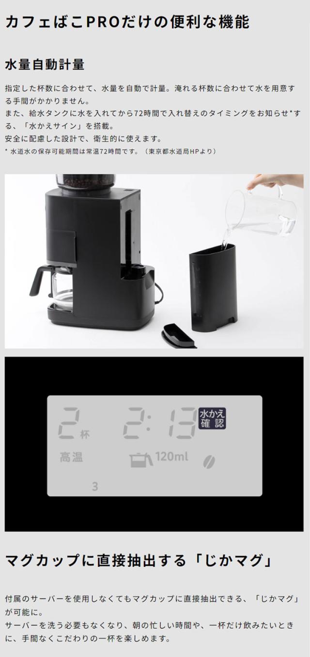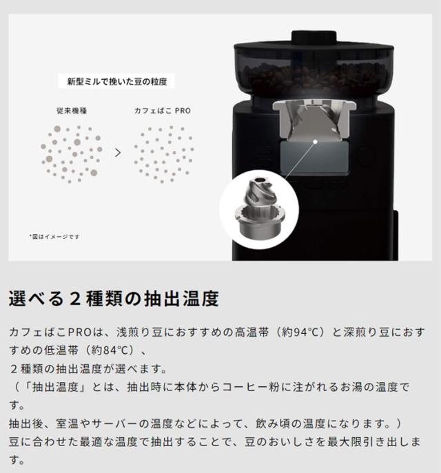 自分好みの本格的な一杯を。挽きムラを抑えた“こだわり挽き”と選べる抽出温度で豆のおいしさを引き出す「コーン式全自動コーヒーメーカー カフェばこPRO」