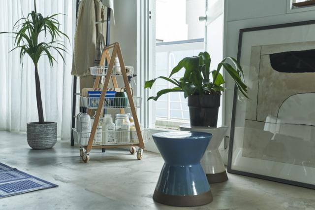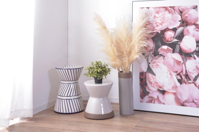 ミニスツール、スツール、フラワーベース、花台、オブジェ、サイドテーブル、陶器、玄関、屋内、屋外、カラフル、ポップ、シンプル、ホワイト、ブラック、ブルー、イエロー、グレー、レッド、ガーデニング、庭、ガーデン