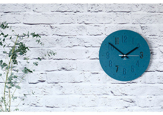 マットな質感でモダンな掛け時計。彫られている数字と抜かれている数字があり、その陰影の違いが特徴です。