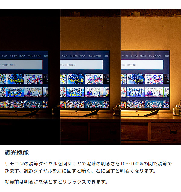 ●点灯方式:本体プッシュスイッチ、専用リモコン