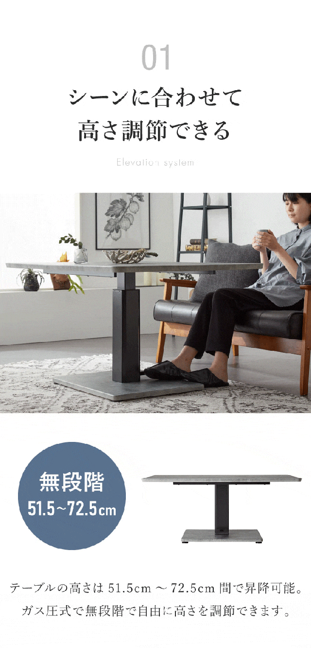幅120×奥行80×高さ57.5〜72.5cm