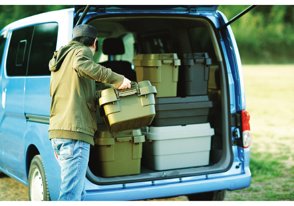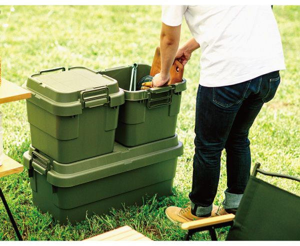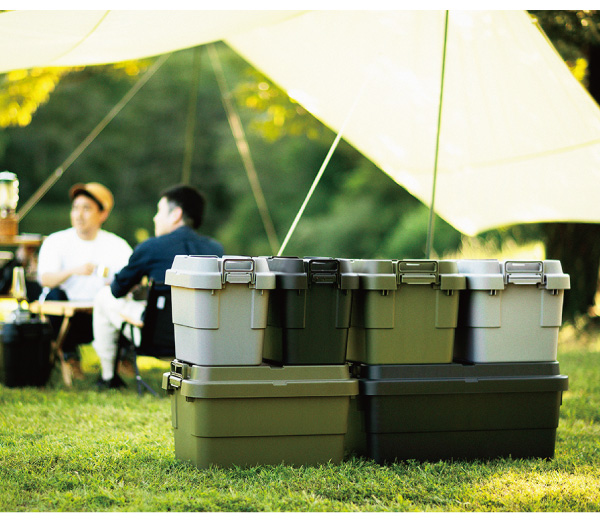 外使いでの使用感をアップデートトランクカーゴに新タイプが登場。トレー型でフラット形状のフタがテーブルとしても使え、積み重ねたときのずれも防止できる仕様となっております。また、フタにベルトガイドの溝を付けたことにより車のルーフキャリーなどに装着し固定できるようになります。