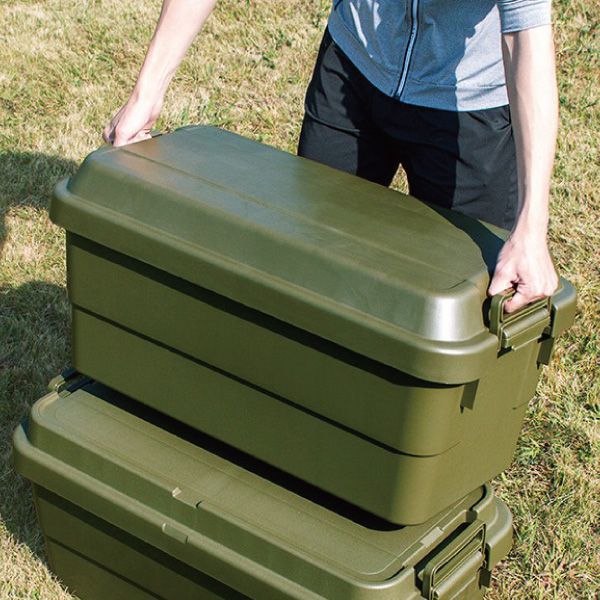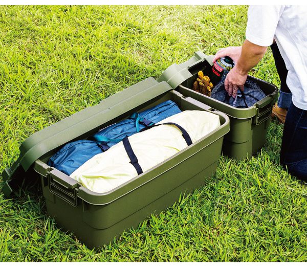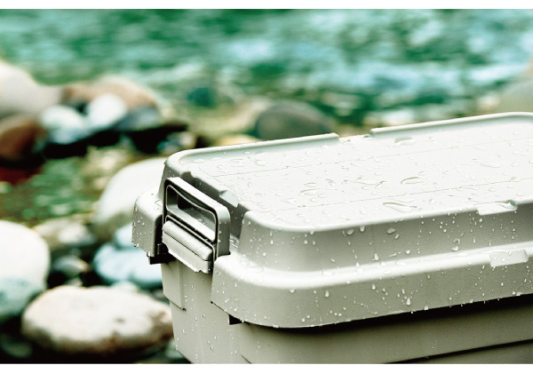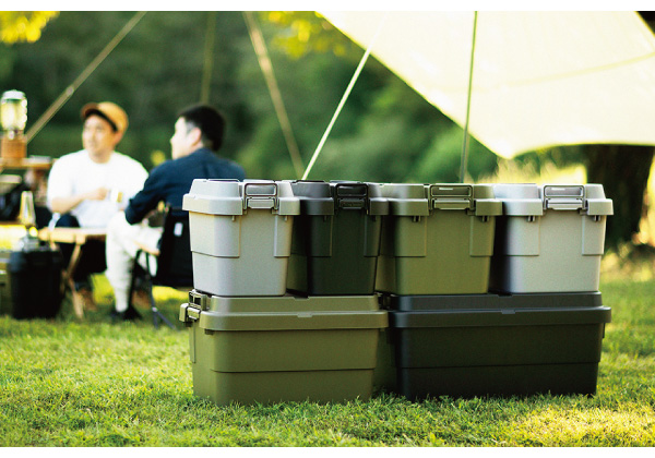 外使いでの使用感をアップデートトランクカーゴに新タイプが登場。トレー型でフラット形状のフタがテーブルとしても使え、積み重ねたときのずれも防止できる仕様となっております。また、フタにベルトガイドの溝を付けたことにより車のルーフキャリーなどに装着し固定できるようになります。