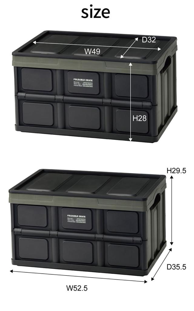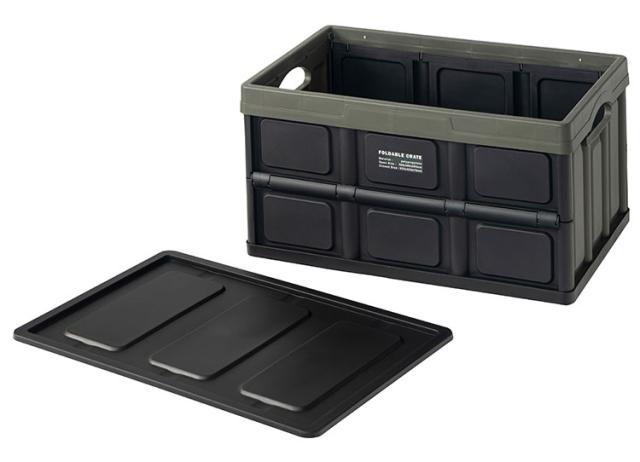 キャンプの収納や、インテリアの収納として使うことができるフォルダブルクレート。