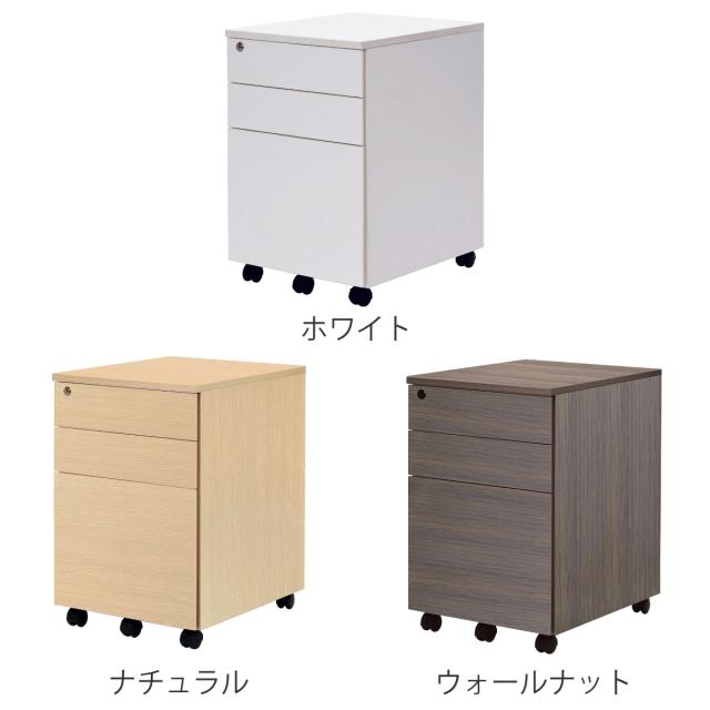 デスクワゴン 幅41.2cm 引出し2杯 鍵付き オールロック機構 オフィス シンプル ( 法人限定 3段 ワーキングデスク ワゴン サイドワゴン キャスター付き オフィス収納 木目調 ホワイト 白 ナチュラル ウォールナット 収納 )