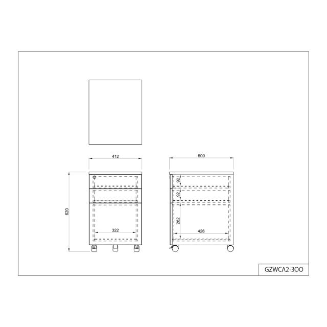 ワーキングデスクシリーズの3段ワゴンです。ワーキングデスクと組み合わせて、または単体でもご使用いただけます。キャスター5個のうち2個にストッパーがついています。
