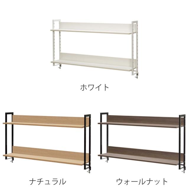 机上空間に収納スペースを増設できるワーキングデスクシリーズの上置き棚です。上段・下段合わせて2か所の棚板は、収納したい物のサイズに合わせて高さを調整できる可動棚です。