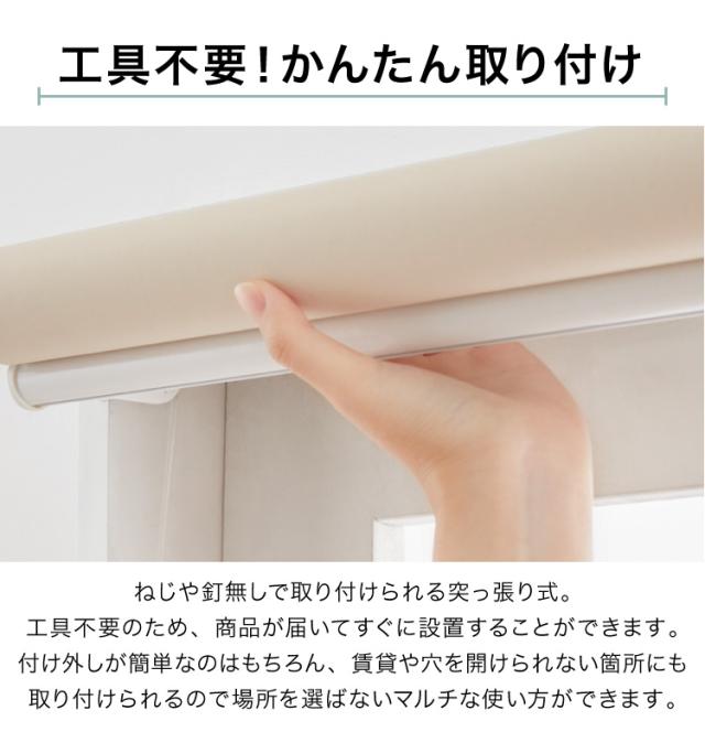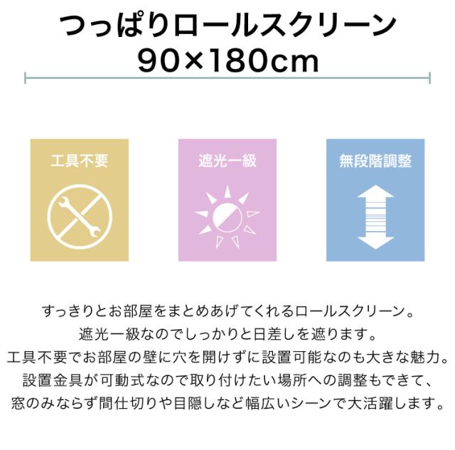 取り付け時工具不要 突っ張り ロールスクリーン 60~90cm以内 90×180cm 遮光 遮光1級 つっぱり ロールカーテン 間仕切り ブラインド カーテン おしゃれ つっぱり式ロールスクリーン 無地 部屋 仕切り(代引不可)【送料無料】