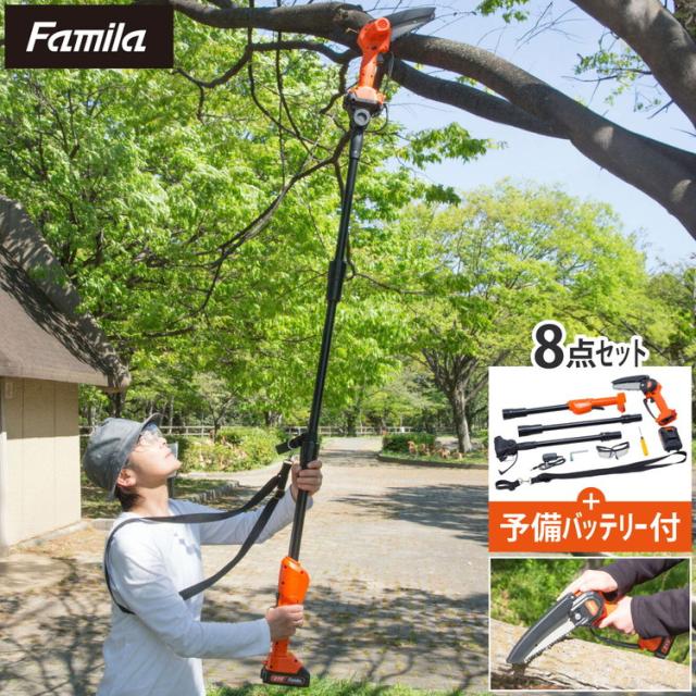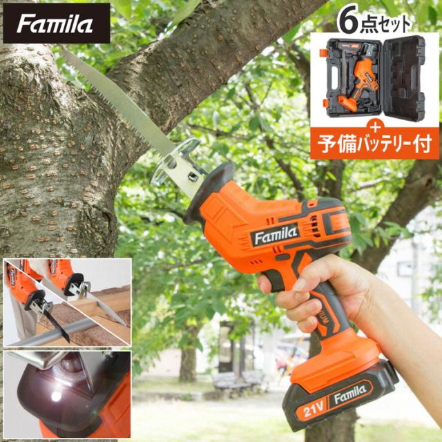 充電式 LEDライト付き ハンディーチェーンソー 軽量 コードレス ファミラ ハンディチェーンソー チェンソー 有効切断直径10cm パワフル切断 庭 ガーデン 園芸(代引不可)【送料無料】