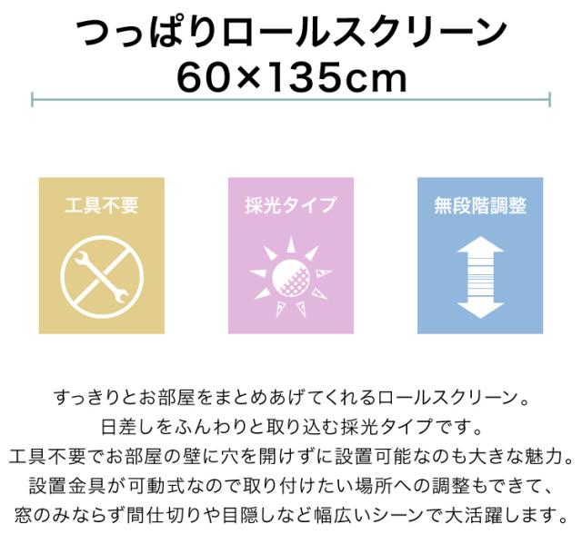 取り付け時工具不要 突っ張り ロールスクリーン 35~60cm以内 60×135cm 採光 つっぱり ロールカーテン 間仕切り ブラインド カーテン おしゃれ つっぱり式ロールスクリーン 無地 部屋 仕切り(代引不可)【送料無料】