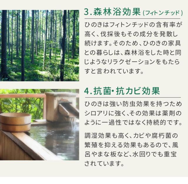 ひのきの美しい木肌に触れ、ただ心底、ホッとする。そんな癒しの時間と空間を、ぜひお楽しみください。