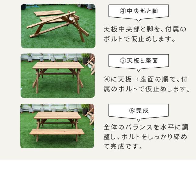 ●防腐・防蟻(ACQ)加工で長持ち!日本を感じる国産ピクニックテーブル