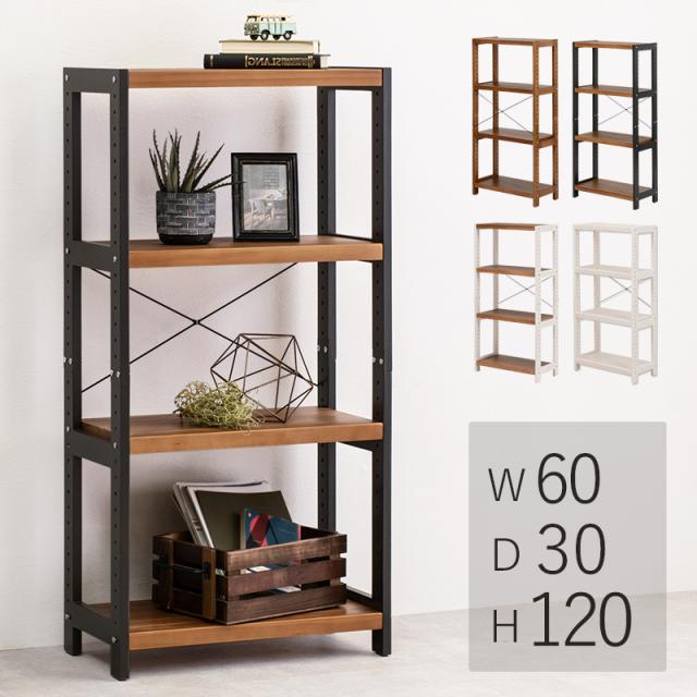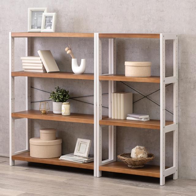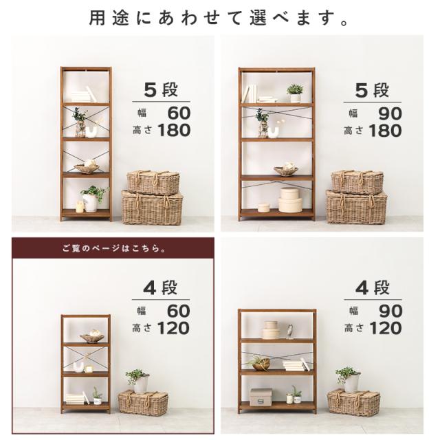オープンラック 4段 幅60cm 木製 天然木 棚板高さ調節 魅せる収納 棚 シェルフ 北欧 フレンチカントリー調 かわいい おしゃれ(代引不可)【送料無料】
