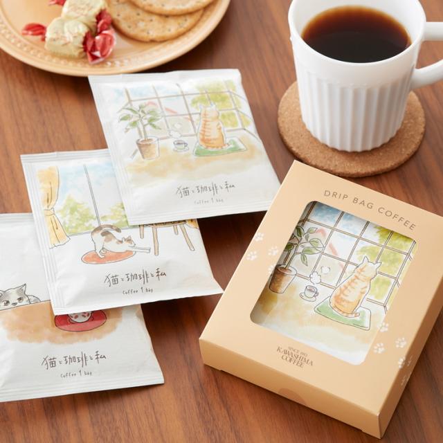 人気のドリップコーヒーシリーズのギフトボックス。猫と一緒過ごしているような、ほっとするくつろぎタイムにぴったりのコーヒーです。猫好きの方へ贈る気軽なギフトとしてどうぞ。