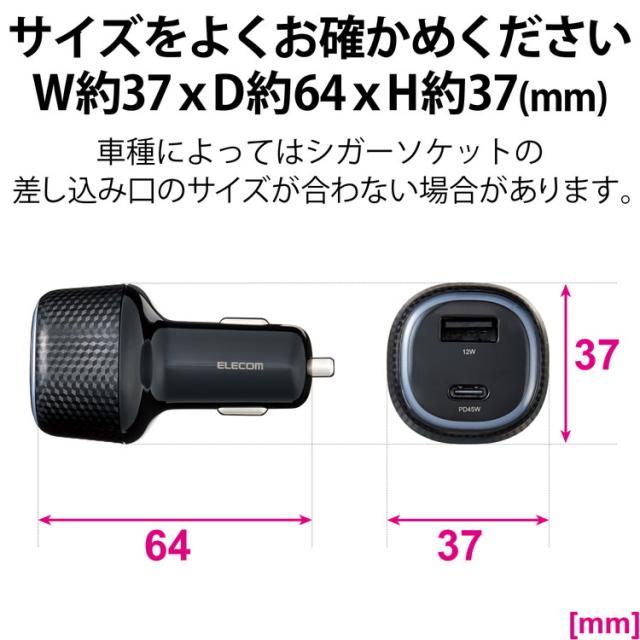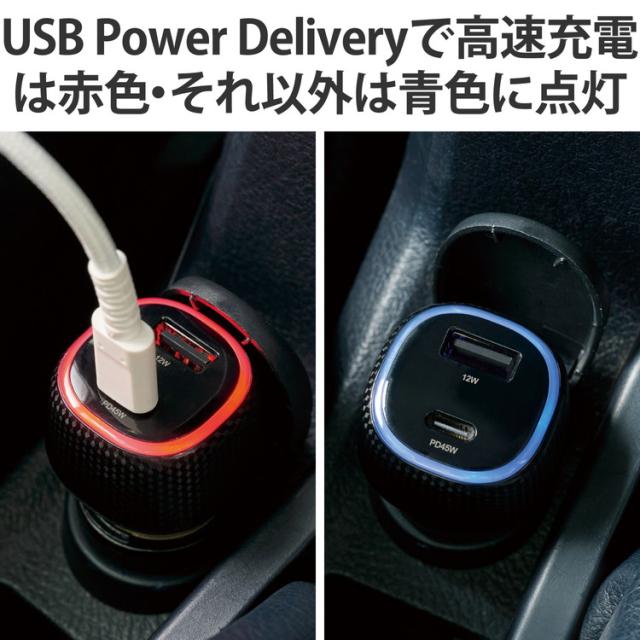 エレコム シガーソケット 最大合計出力57W 2ポート USB C ×1 USB A ×1 PD 45W LEDインジケーター搭載 MacBook Air iPhone iPad Android など各種対応 ブラック MPA-CCPD10BK(代引不可)【送料無料】
