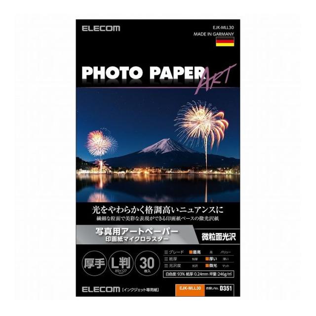 エレコム プリンター用紙 写真用紙 L判 30枚 微光沢 写真用アートペーパー 印画紙 最上級グレードART紙 厚手 マイクロラスター インクジェット用紙 ホワイト EJK-MLL30(代引不可)