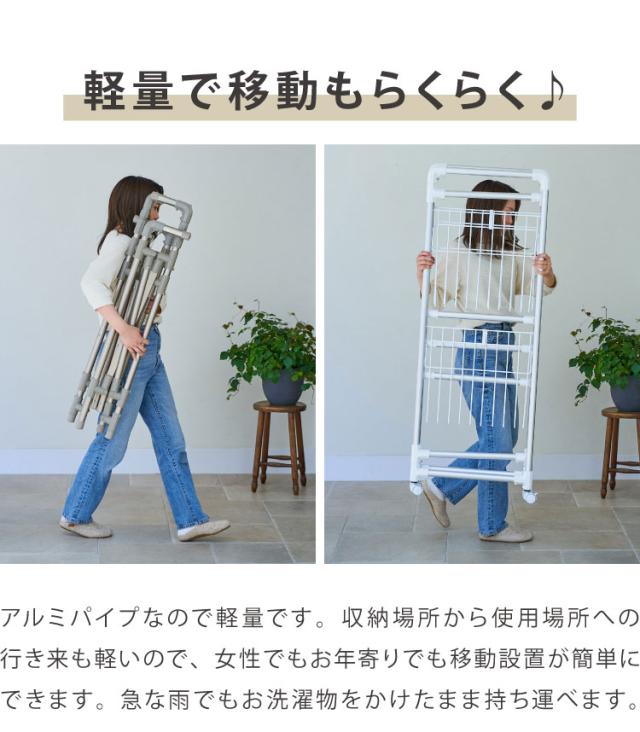 キャスター付きコンパクトアルミ物干し 折りたたみ 軽量 持ち運びらくらく 部屋干し コンパクト 室内 屋内 タオル干し 折り畳み Leger(レジェール) おしゃれ【送料無料】