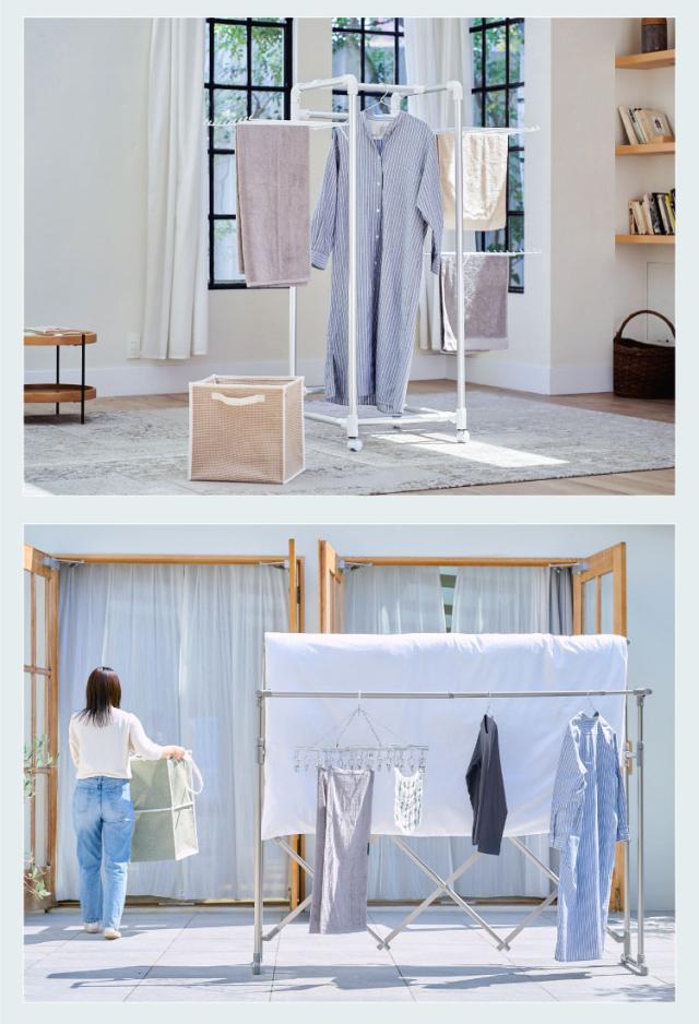 伸縮アルミ物干しレギュラー | 伸縮アルミ物干しワイド | キャスター付きコンパクトアルミ物干し |