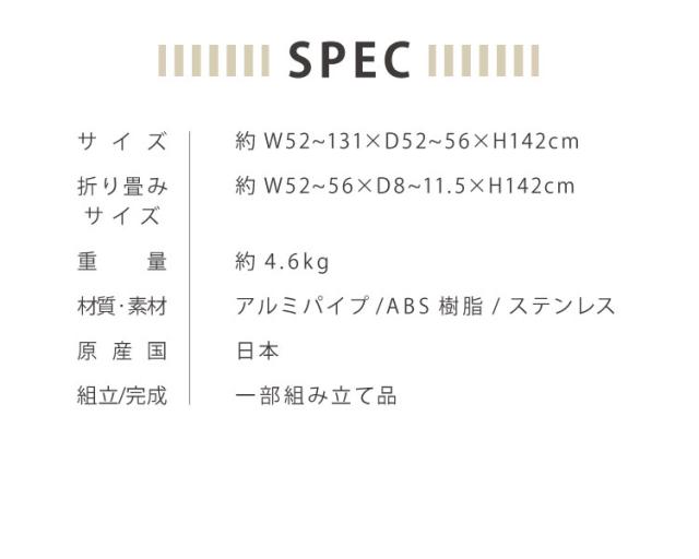 サイズ:約W52〜131×D52〜56×H142cm