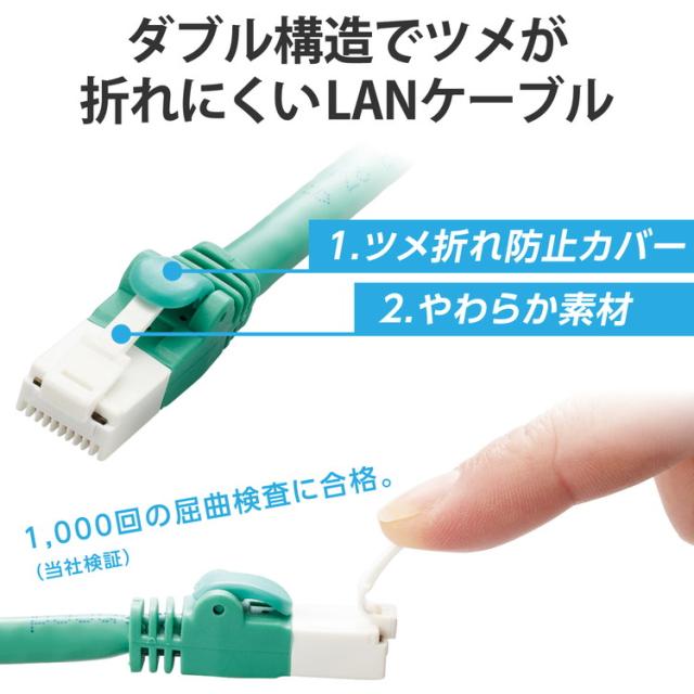 ■ツメ折れ防止プロテクターと屈曲に対する耐久性が高い新素材コネクターを採用したダブル構造で、ツメが折れにくいLANケーブルです。 ※1000回の屈曲検査に合格(当社検証)