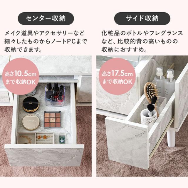 コスメテーブル 幅75 奥行45 高さ38 センターテーブル ドレッサー ローテーブル 北欧 シンプル おしゃれ 白 ホワイト 大理石調 韓国インテリア(代引不可)【送料無料】