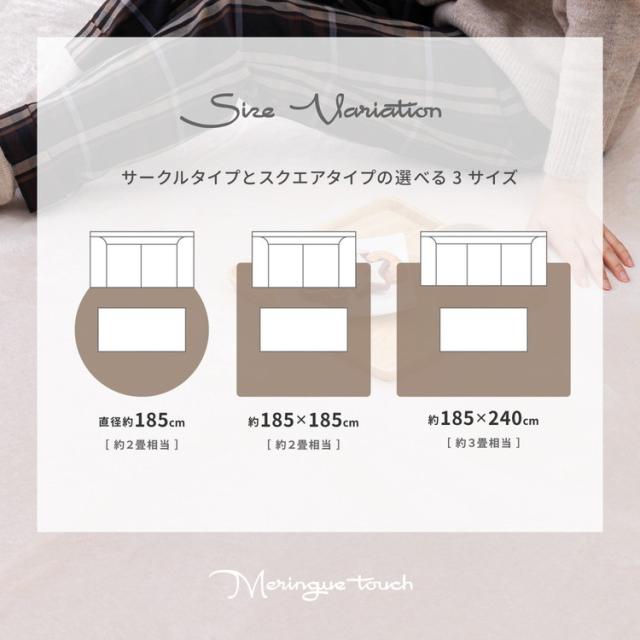 撥水加工ラグ メレンゲタッチ 低反発ラグ 直径185cm 丸形 2畳 ラグマット こたつ敷き おしゃれ ウレタン入り 滑り止め付き 手洗いOK ホットカーペットカバー 無地 ふっくら はっ水 厚手 秋冬 年中(代引不可)【送料無料】
