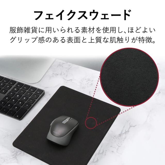 デスクに置いて、素材感を楽しめる。 ハンドバッグなどの服飾雑貨に用いられるフェイクスウェードを使用し、温かみのある上質な肌触りと発色が楽しめるテクスチャマウスパッド。