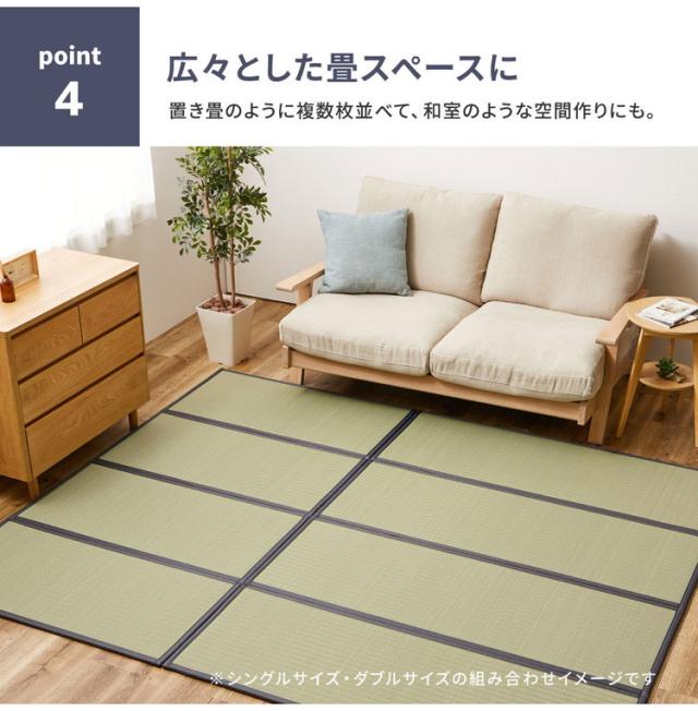 マットレスとしてフローリングと敷布団の間に敷けば、程よいクッション性で床の硬さを軽減してくれます。また、置き畳のようにもお使いいただけるため、複数枚を並べて敷けば、広々とした畳スペースに。