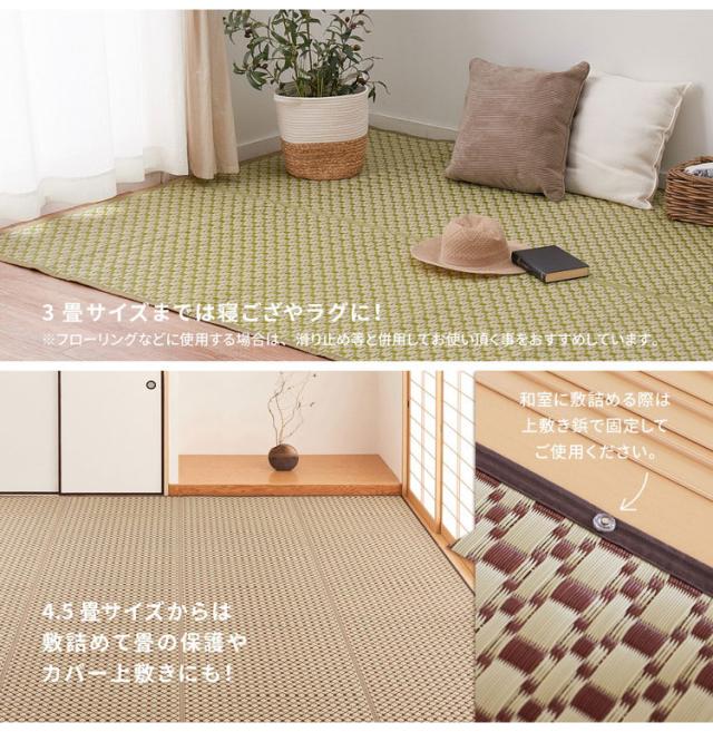 洗える い草風カーペット ルイス 江戸間6帖 261×352 花ござ 洗えるラグ 柄上敷き PP素材で水に強い 屋内 屋外 レジャーシート(代引不可)【送料無料】