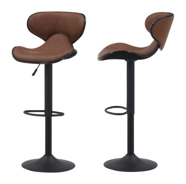 カウンターチェア ヴィンテージ風 昇降式 高さ調節 フットレス付き 合成皮革 バーチェア ハイチェア スツール ハイスツール レトロ カフェ風 キッチンカウンター(代引不可)【送料無料】