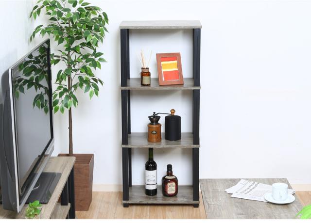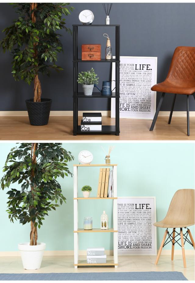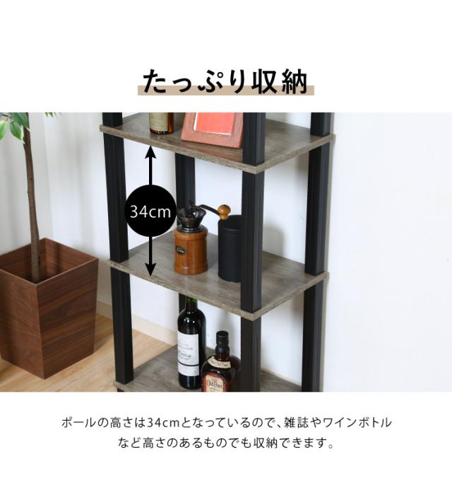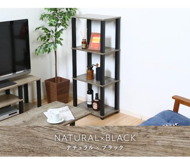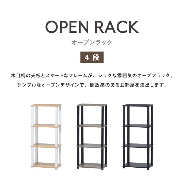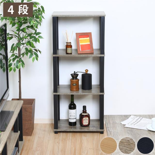 組立簡単 オープンラック 棚 シェルフ 4段 幅47 奥行30 スリム 収納 木製 木目 キッチン リビング ディスプレイ サイドテーブル【送料無