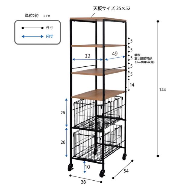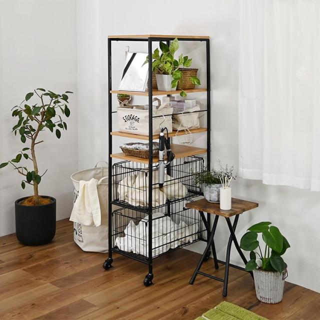 ・ワイヤーバスケット付きの収納ラックです。