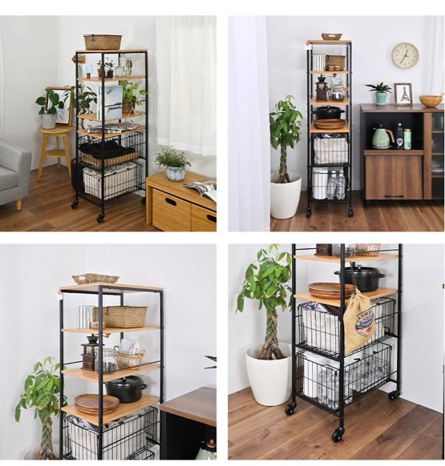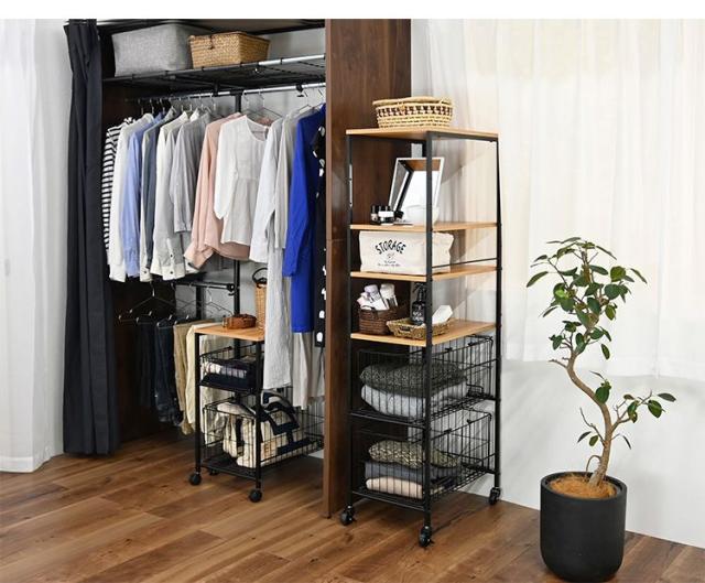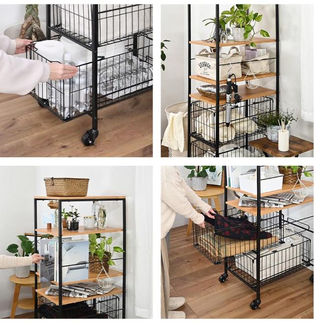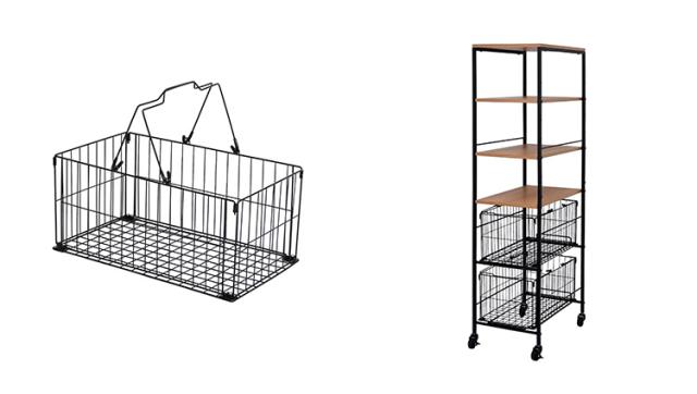 持ち運べるバスケット付き収納ラック