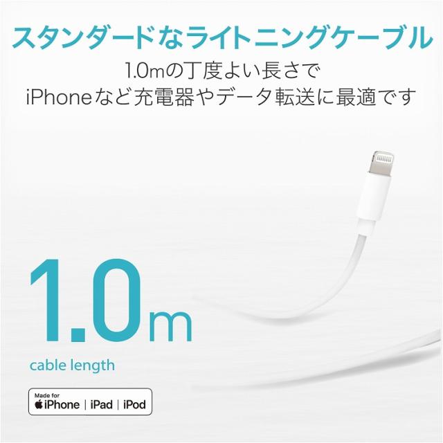 エレコム ライトニングケーブル 1m Lightningiphone / ipod オーディオ向ケ スタンダードタイプ データ転送/充電用 MPA-UALO10WH(代引不